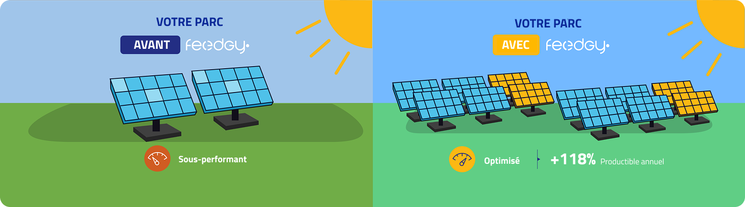 Face à ces défis, le repowering s’impose comme un levier stratégique. Feedgy vous aide à détecter et corriger rapidement ces écarts pour retrouver une performance conforme aux attentes et sécuriser vos revenus.